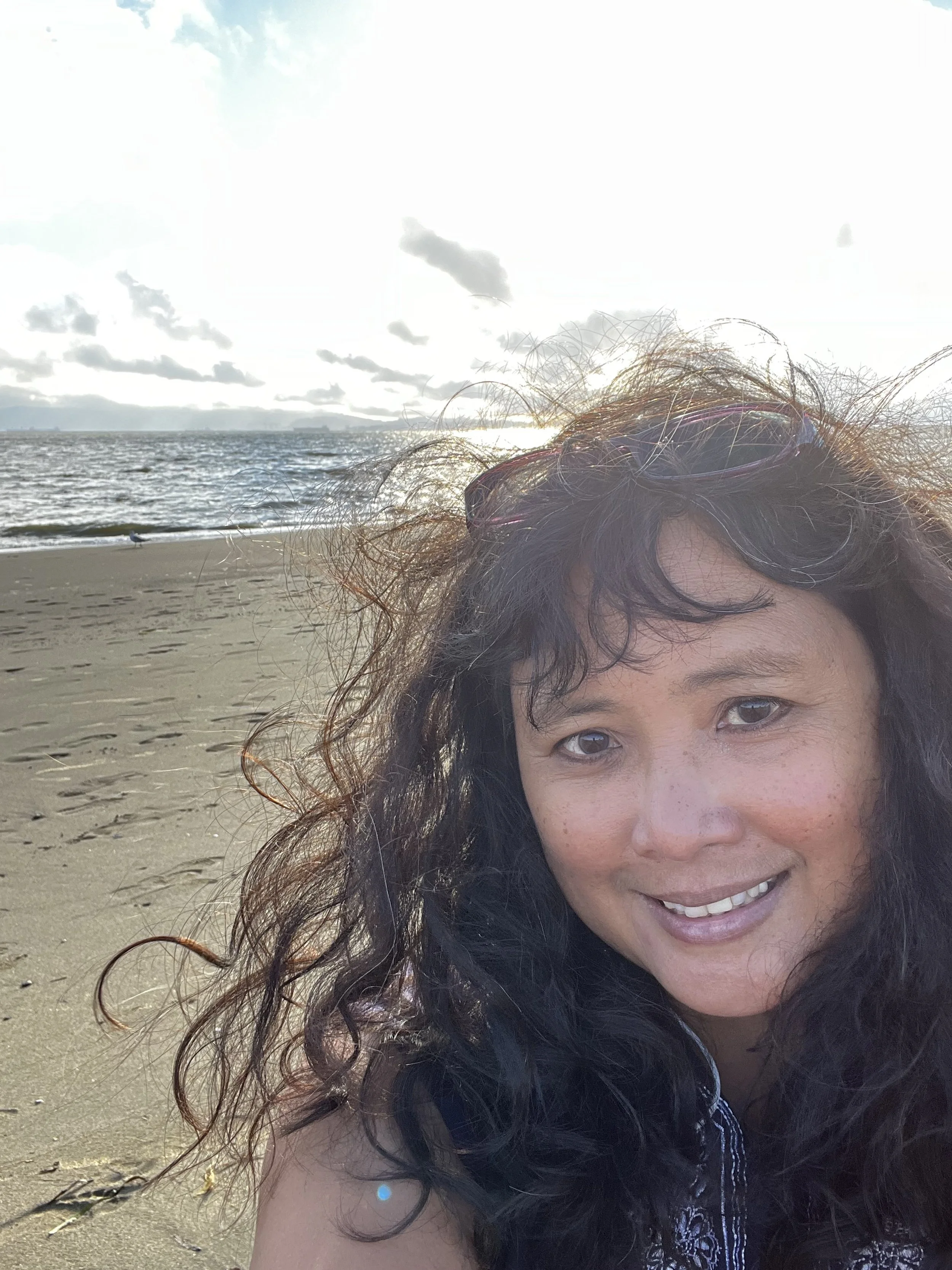 Oakland-based artist and Silicon Valley-centered businesswoman. Her work is influenced by the cultures she was born into (Philippines), where she began school (Japan), and where she grew up (North America). She creates sculpture, writes creative non-fiction pieces, and dances from her reflections as a child of war, an immigrant outsider, lover of textiles, and celebrant of movement. Her sculpture graces the cover of the art and literary anthology, Cheers to Muses.